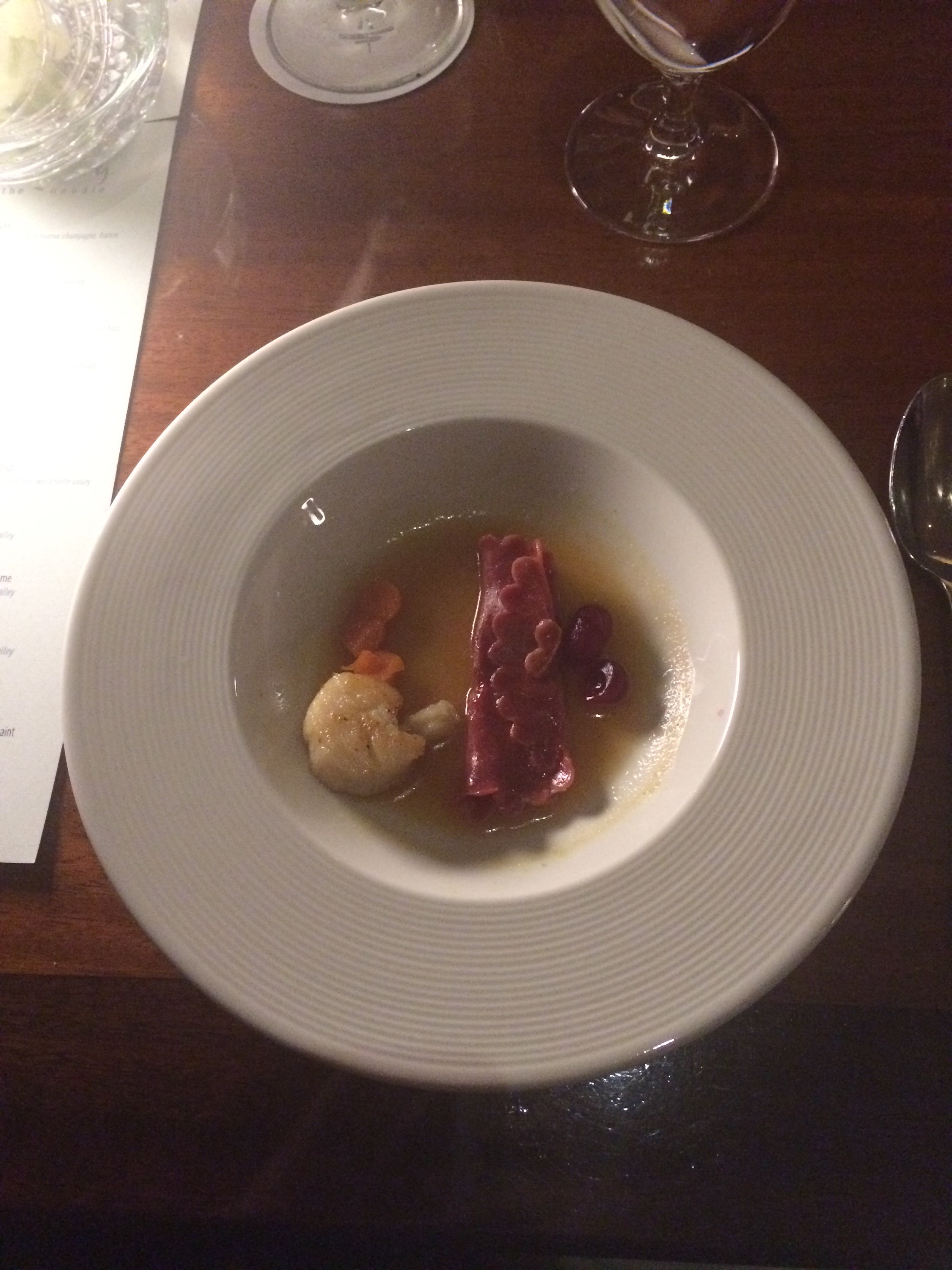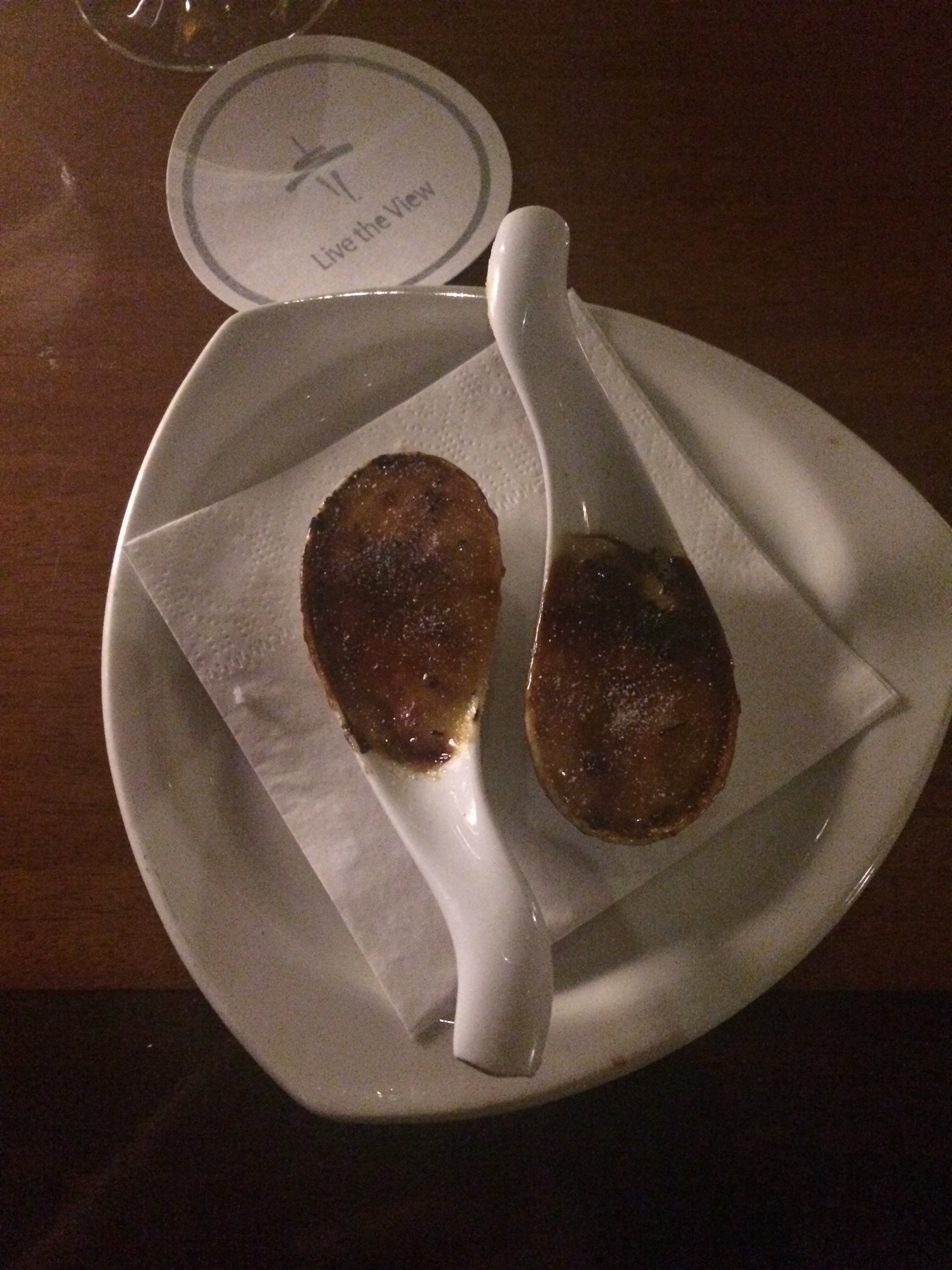 Amuse bouche – pink peppercorn-butterscotch creme brûlée